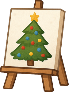 Jelka na kanvas platnu koju deca ukrašavaju prstićima i akrilnim bojama.